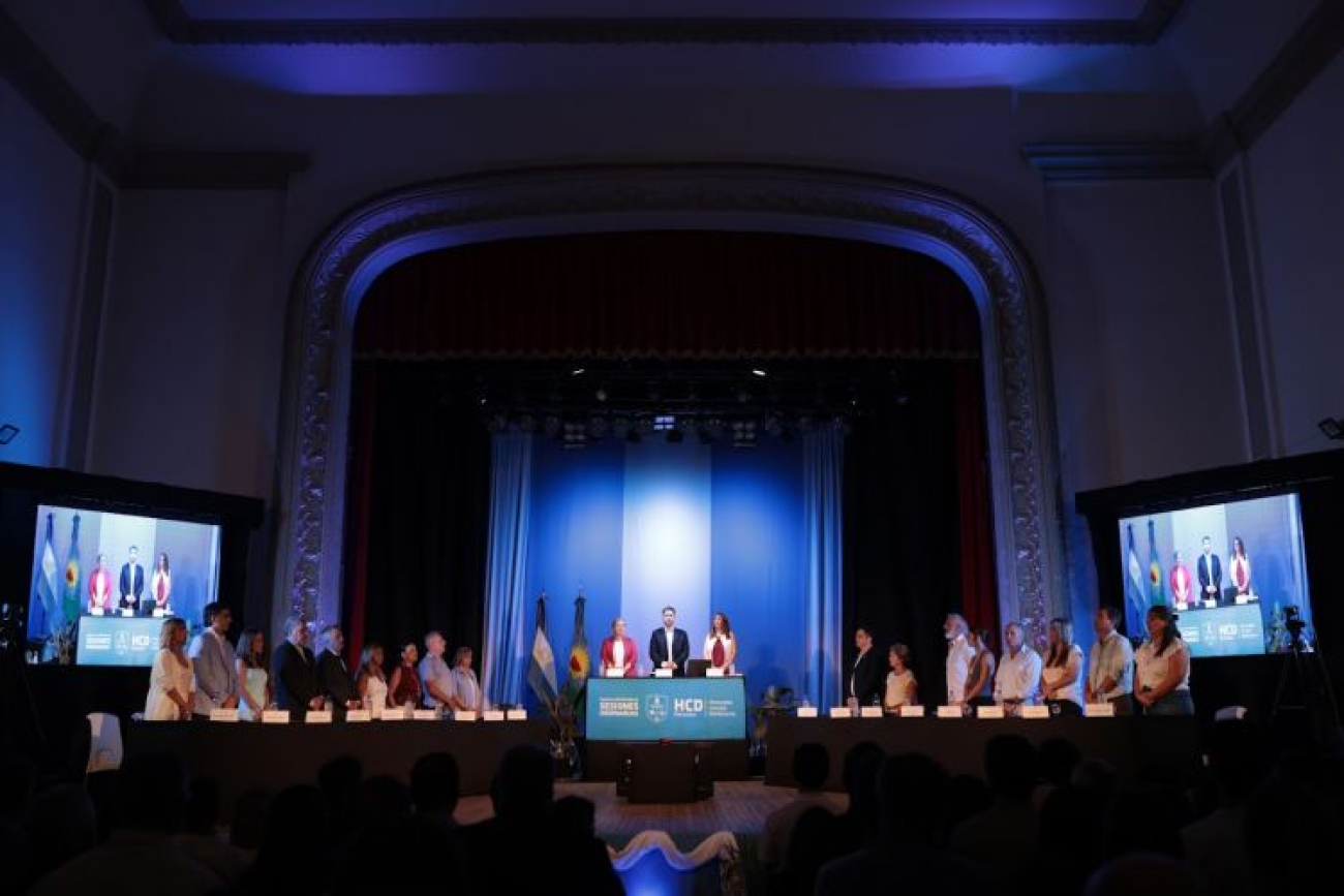 El acto se realizó este miércoles desde las 19 en el Teatro Argentino Julio César Gioscio. Además de los concejales y de los funcionarios que forman parte de los equipos de Ustarroz, estuvieron presentes el senador nacional Eduardo Wado de Pedro, autoridades judiciales y de fuerzas de seguridad y representantes de distintas instituciones de la ciudad.